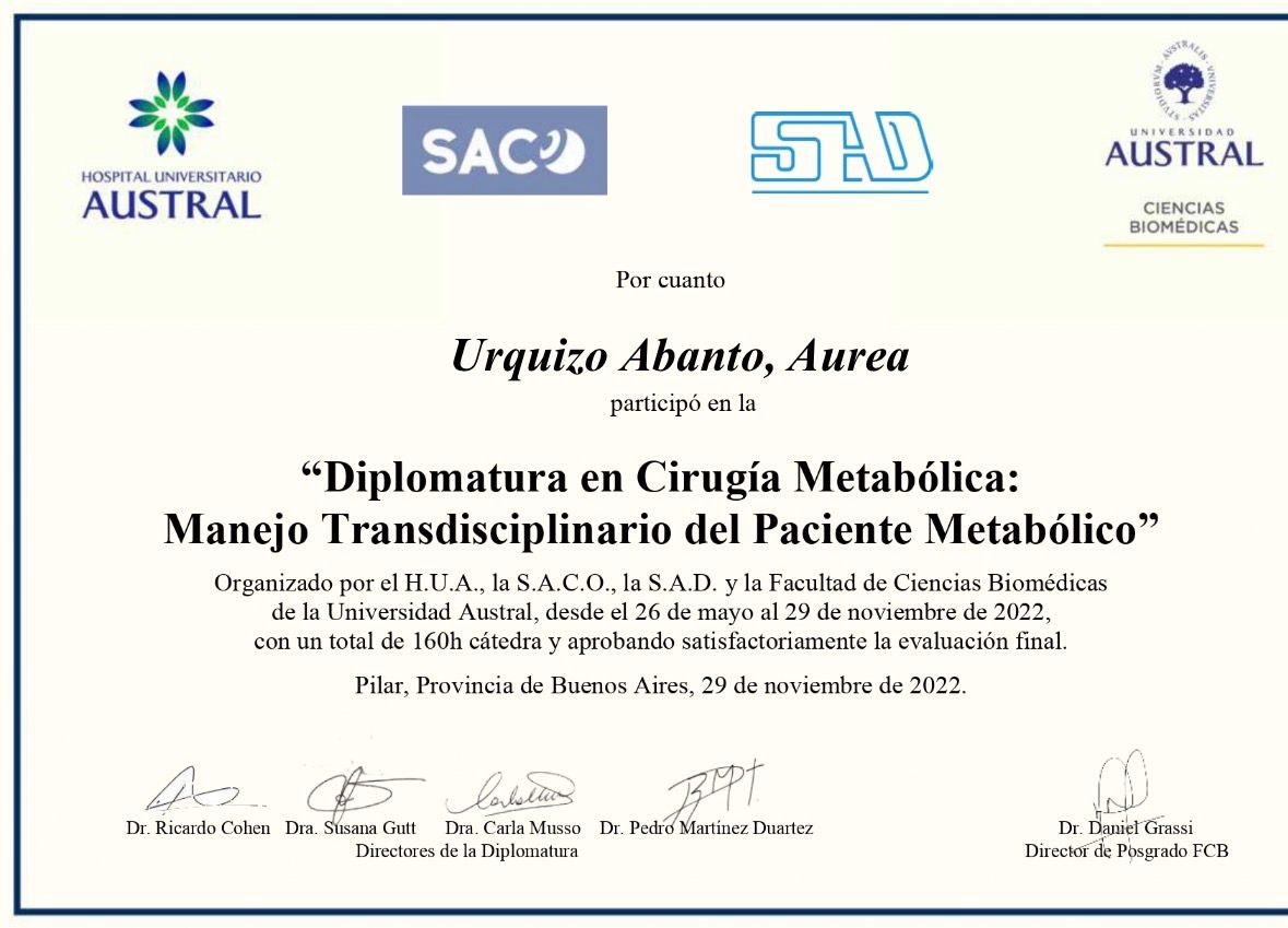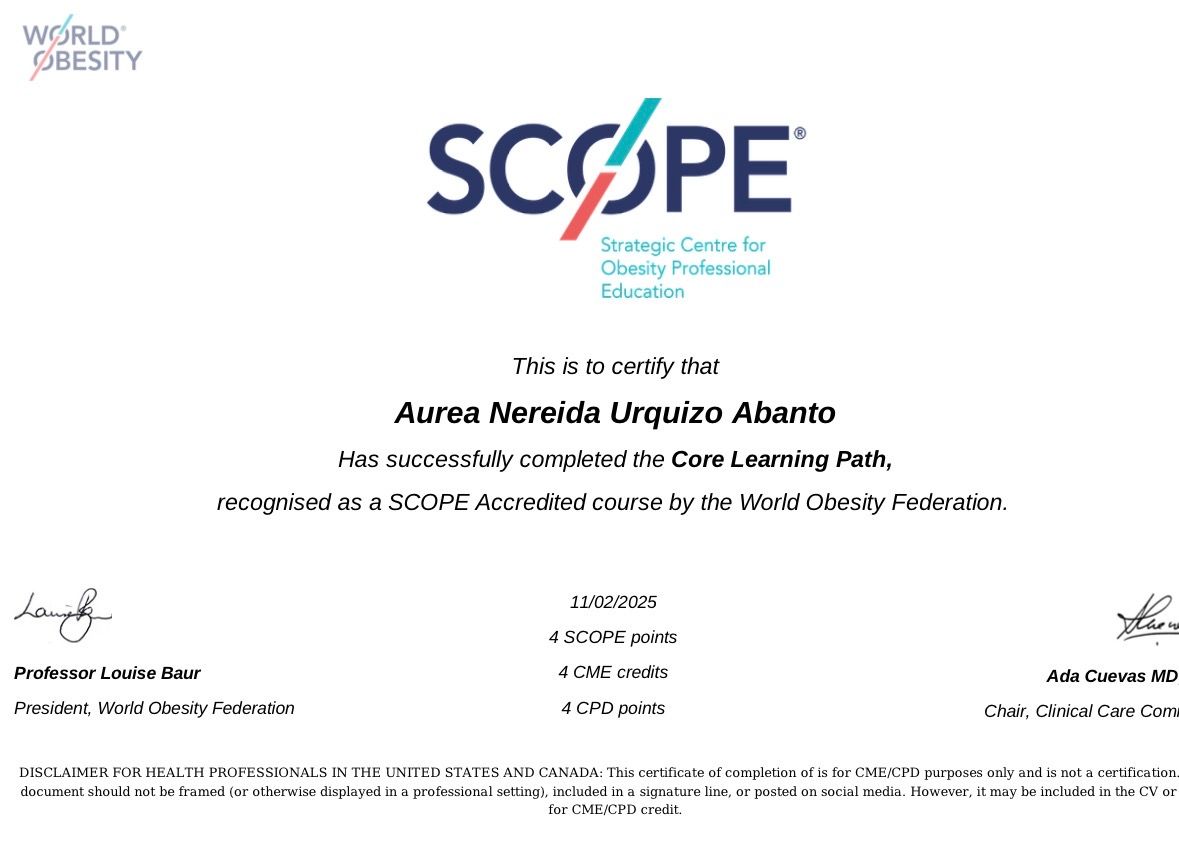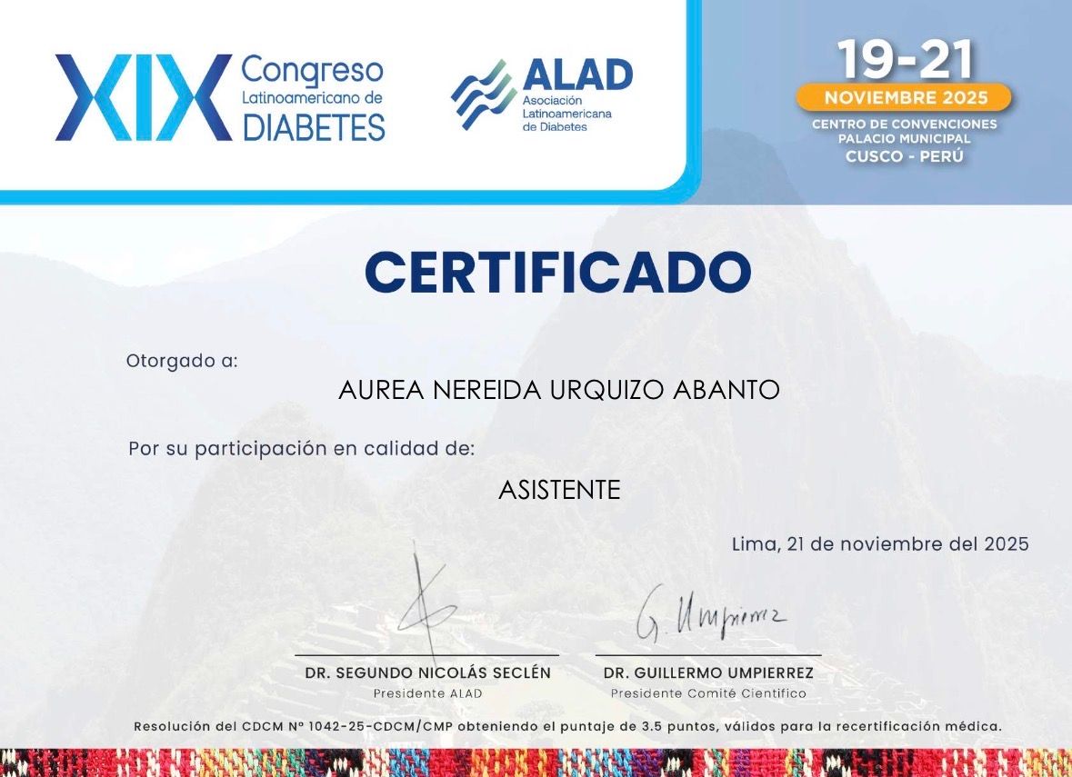 Soy especialista en Endocrinología, con maestría en Obesidad y Diabetes, Diplomado en Cirugía metabólica. Actualmente formo parte del equipo médico de Clinica Internacional.