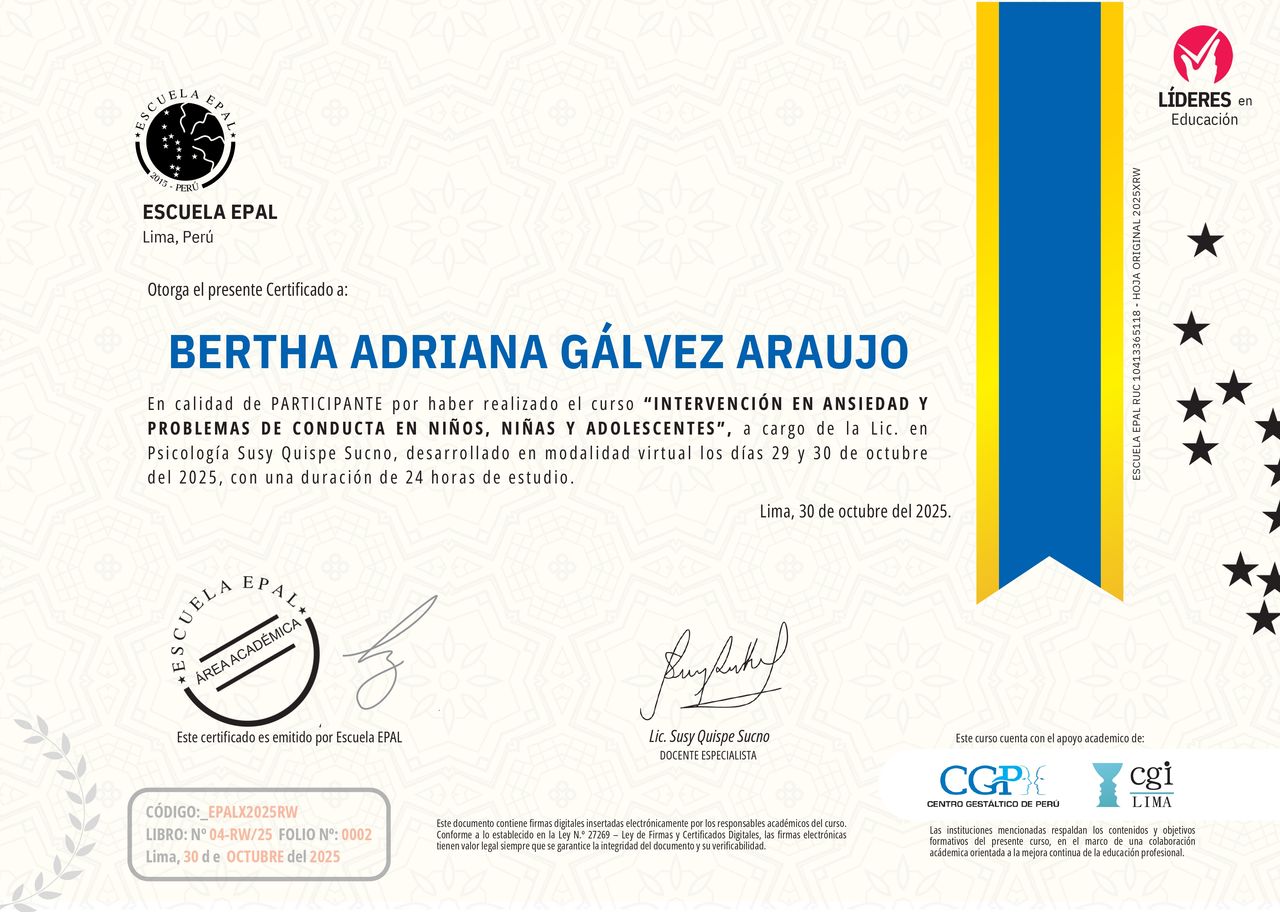 Psicóloga Clínica, madre de cinco y matrimonio de 46 años. Mi mayor objetivo es ayudar a personas que se sienten confundidos, desorientados y agotados emocionalmente; sin saber que la respuesta esta en ellos mismos planteando metas realista según las necesidades paciente de modo que no vayan a tropezar con la misma piedra en el futuro Me gusta pensar que mis sesiones no son simples sino que les ayudan a aprender conceptos que integran sus vivencias previas, comprendiéndolas de manera trascendental.