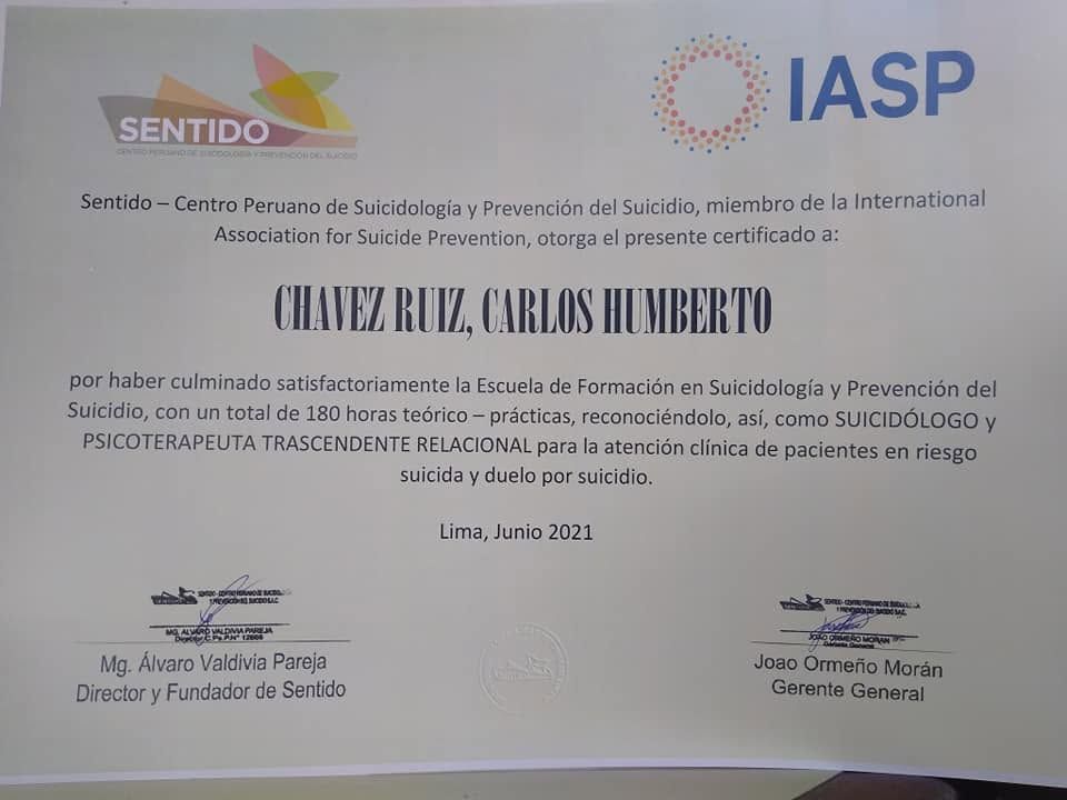 Licenciado en Psicología (U. Lima), C. Ps. P. 27894.