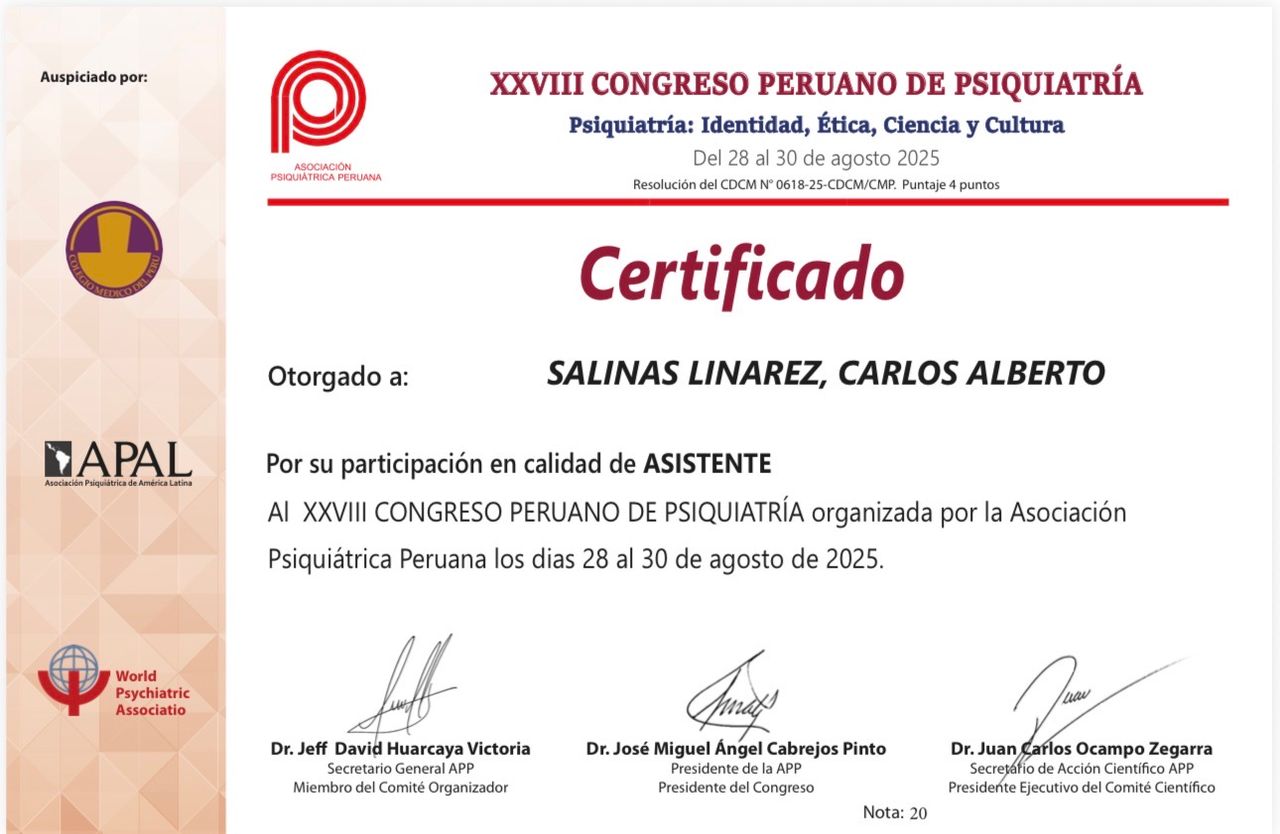 Núm. Colegiado: CMP 068925 RNE 041905