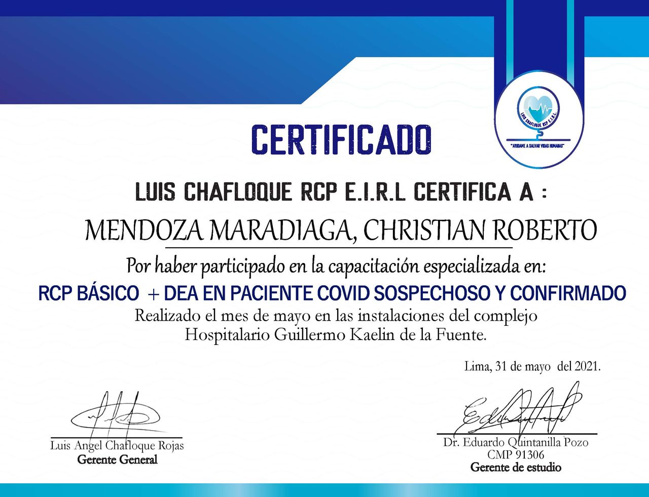 Núm. Colegiado: CMP:087798 RNE:039408