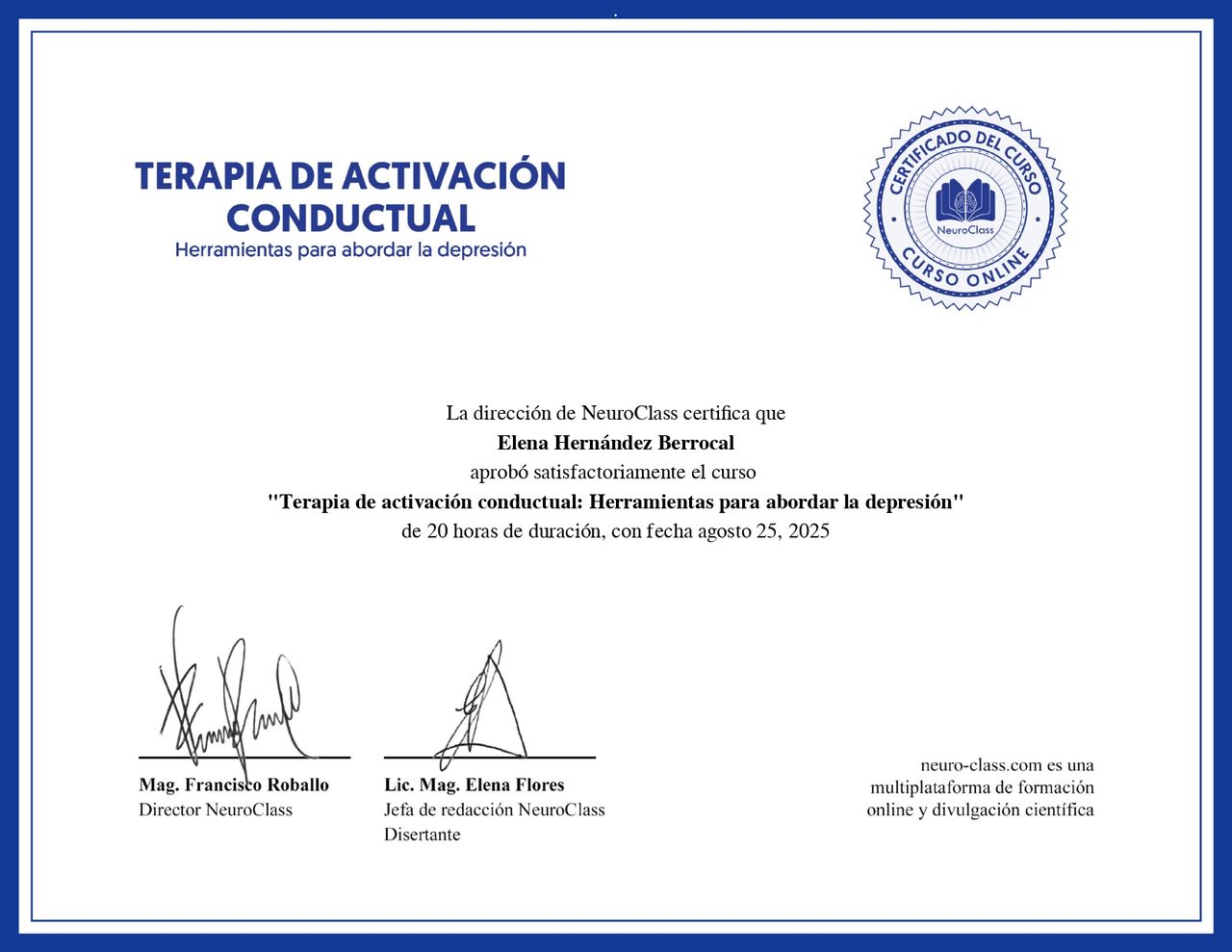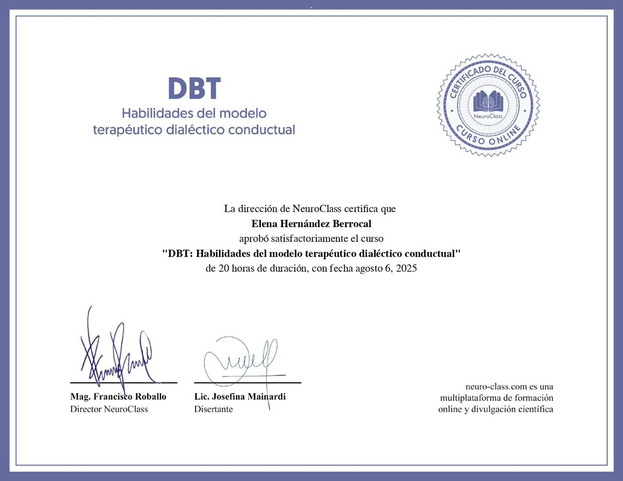Llevo un mes en terapia con Elena (cuatro sesiones) y desde el primer día me he sentido muy contenida. Lo que más valoro es que puedo hablar con total libertad y expresar todo lo que llevo dentro. Elena me escucha con atención, sin juzgar, y eso me ha hecho sentir muy cómoda desde el inicio.