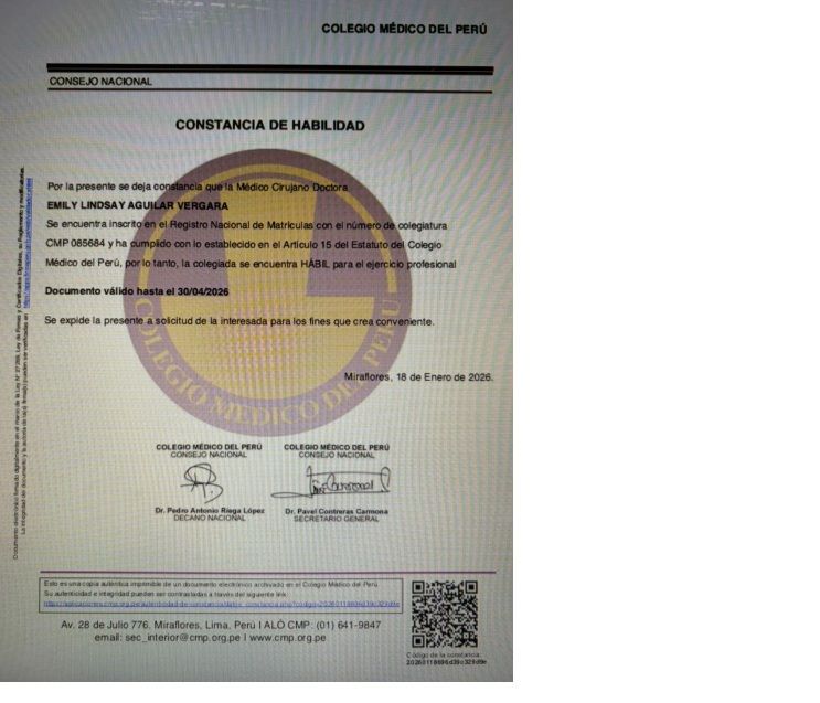 Núm. Colegiado: CMP: 085684 RNE: 050183
