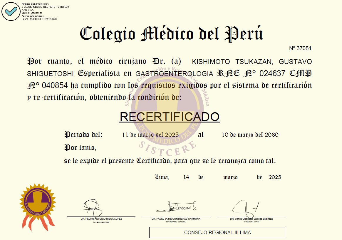 • Policlinico Peruano Japones • Visita Gastroenterología •
