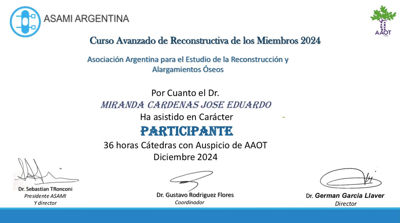 Soy un médico traumatólogo formado en el Hospital Guillermo Almenara. Con 6 años de experiencia. Durante mi labor en emergencia, pude ver múltiples casos de traumatismos severos los cuales podrían ocasionar la pérdida de la extremidad. Es por ello que me capacite en métodos de regeneración ósea. Lo cual me permite brindar tratamiento en múltiples patología óseas: deformidades, dismetrias, infecciones óseas de miembros inferiores.
