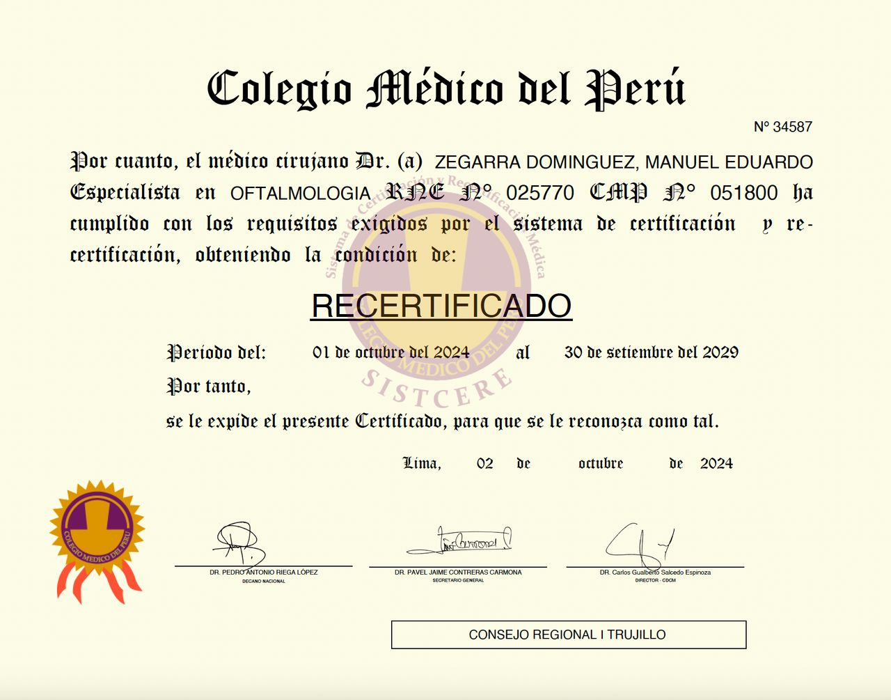 Médico oftalmólogo, especialista en retina. Con sólida formación en la Facultad de Medicina de la UNT y en la Fundación Visión de Paraguay. Brindo atención ética, precisa y personalizada en Oftalmológica El Golf, Trujillo. Mi compromiso es ayudarte a ver mejor.