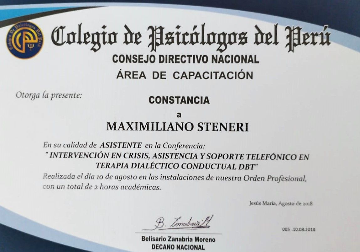 Psicólogo con experiencia en el acompañamiento de personas que atraviesan momentos difíciles en donde pueden experimentar ansiedad, depresión, estrés, obsesiones,compulsiones,insomnio, etc. Me gusta ofrecer un espacio adecuado, en el cual puedas expresarte libremente. Atiendo de forma online , o en consultorio ( direcciones disponibles: Magdalena del mar y San Isidro)