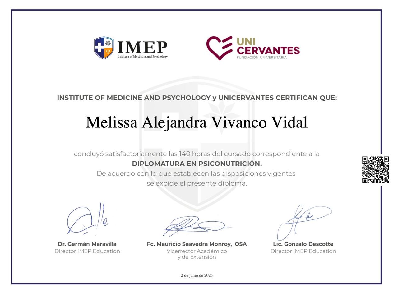 Soy nutricionista colegiada con formación de posgrado en ciencias avanzadas de la nutrición y especialización en psiconutrición. Además, soy docente universitaria, lo que me ha ayudado a desarrollar una forma de explicar clara, práctica y fácil de aplicar en el día a día.