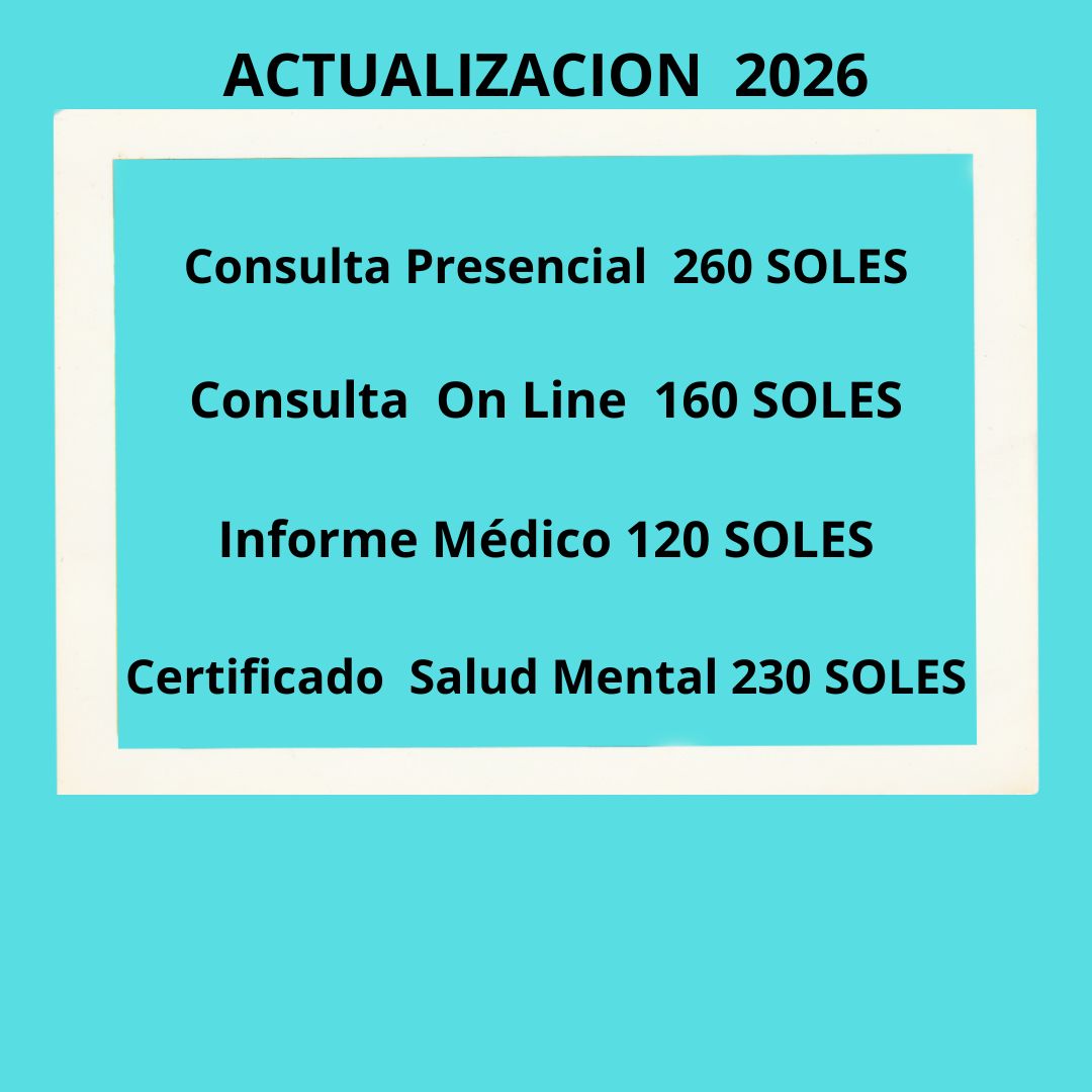 • Presencial Psiquiatría- Psicoterapia • Visita Psiquiatría •