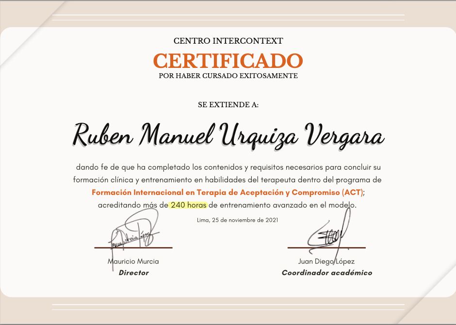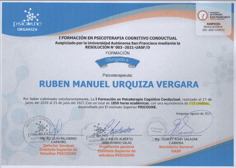 • Ruben Manuel Urquiza Vergara • Consultoría psicológica •
